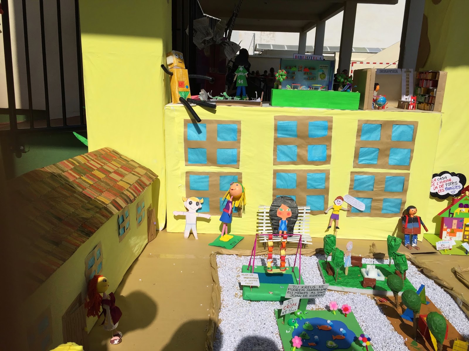 Després vam ajudar a montar la falla col.lectiva que representava tots els desitjos que l'alumnat te al voltant de l'escola nova.